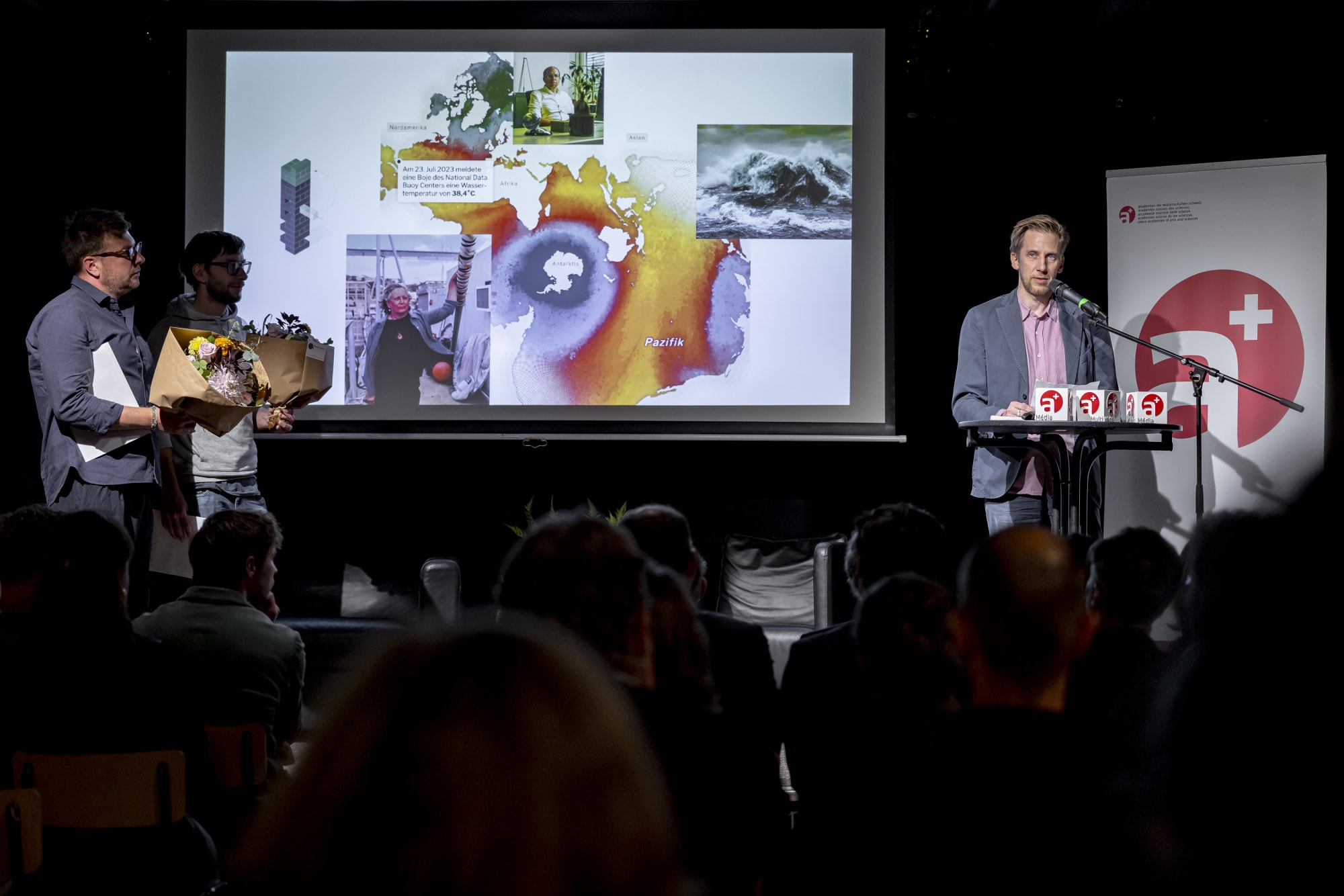 Brennende Probleme eindrucksvoll erzählt: Katharina Bochsler, Sebastian Broschinski, Christof Gertsch und Mikael Krogerus gewinnen dieses Jahr die Preise für herausragenden Wissenschaftsjournalismus. Katharina Bochsler erhält den Prix Média 2025 für ihren Radiobeitrag «Heisse Konflikte», während Sebastian Broschinski, Christof Gertsch und Mikael Krogerus für ihre Reportage «Das erschöpfte Meer» mit dem Prix MultiMédia 2025 ausgezeichnet werden. Die Preise sind mit je 10'000 Franken dotiert.